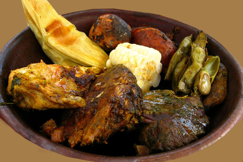 Sucesivamente cavar un hoyo en la tierra y calentar piedras de preferencia de río o mar, pero para que éstas no se rompan vertir sobre ellas constantemente Aguacon sal por espacio de tres horas como mínimo; calentadas las piedras se colocan una capa en el fondo del hoyo, para luego colocar la carne, sucesivamente cubrirlas ligeramente con otras piedras, agregar los camotes, las papas, más piedras, los choclos y taparlo con hojas de platano, costales de tela y sucesivamente tierra húmeda por espacio de una hora.